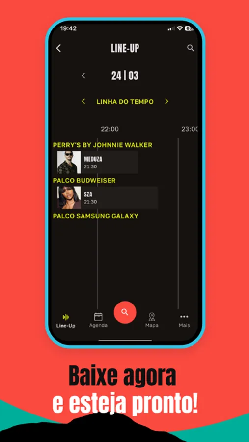 Com ele, você pode acompanhar todas as bandas que estarão presentes, agendar seus shows favoritos e encontrar sua localização no evento!