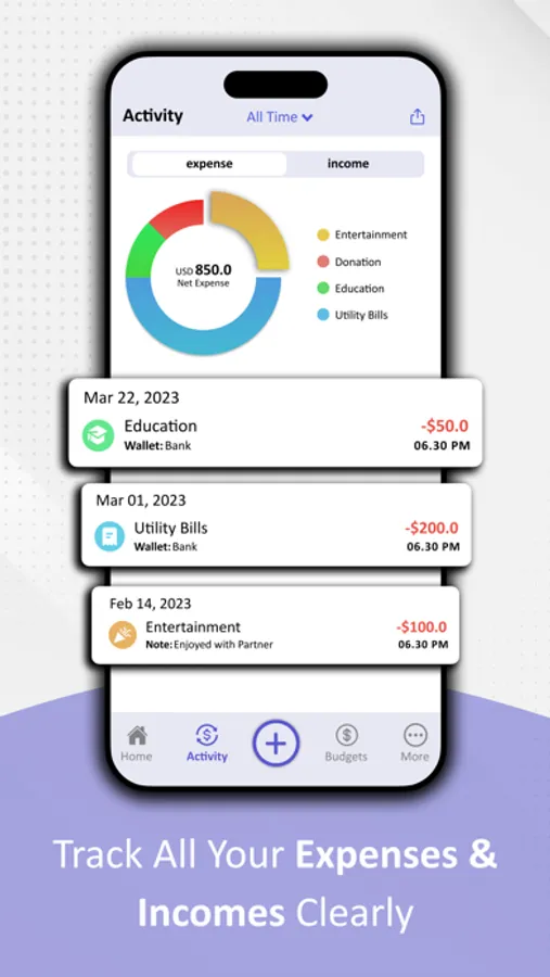 Custom Budgets: Set monthly or category-specific budgets to monitor your spending habits.