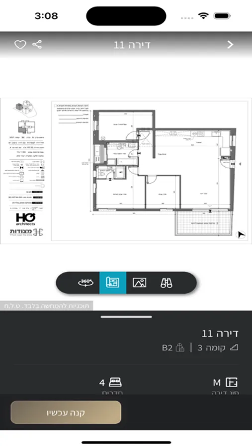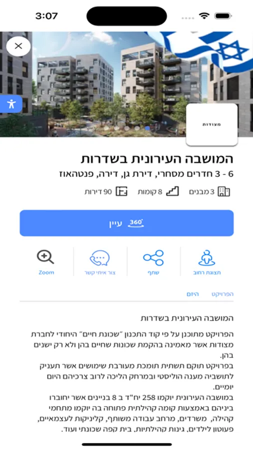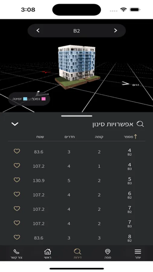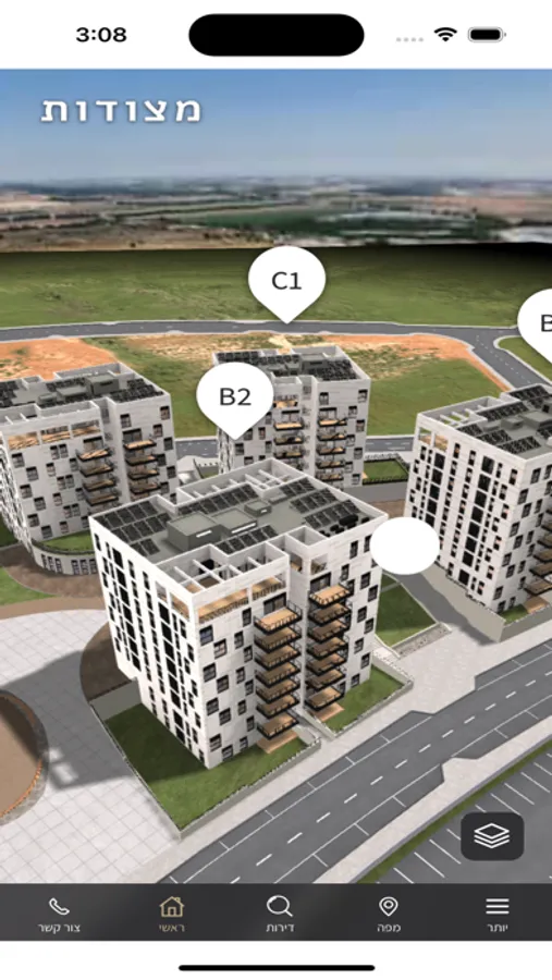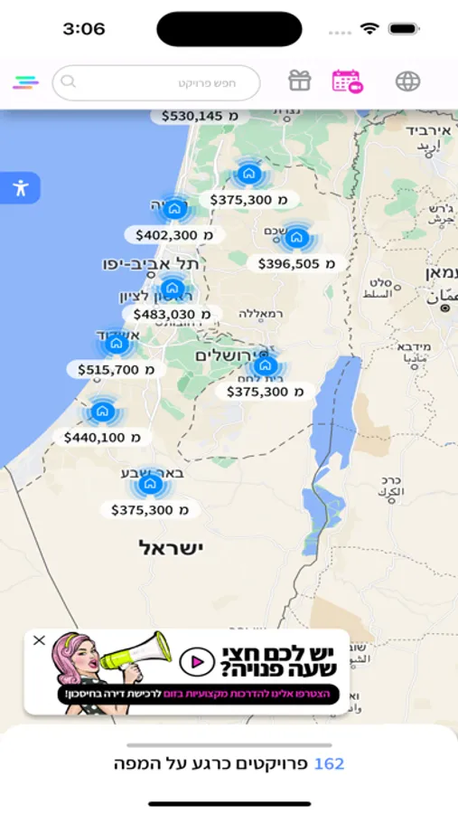 A BMBY Dreams app featuring various real-estate projects on a map of Israel