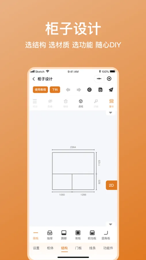 10,柜子设计、画柜子、2D/3D衣柜设计、板材切割、添加材料切割