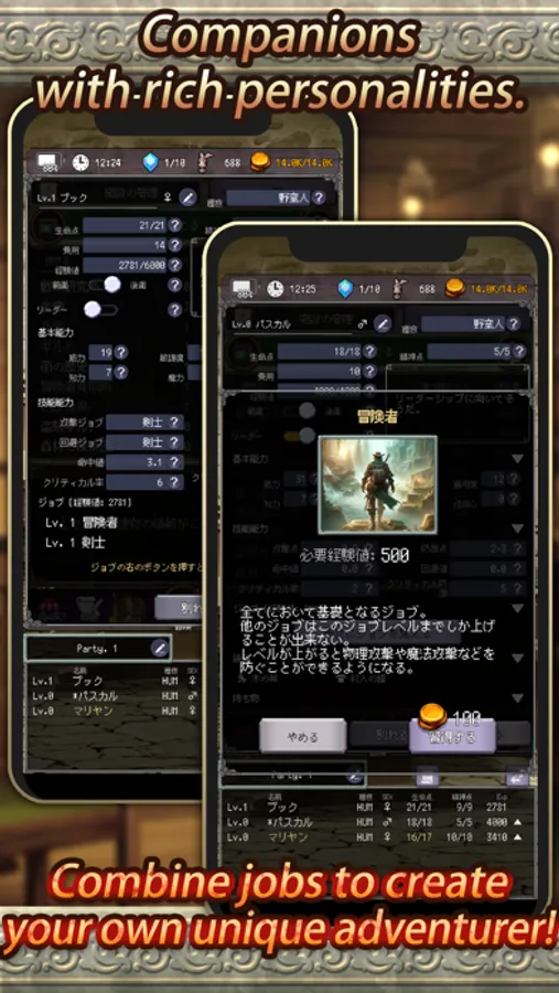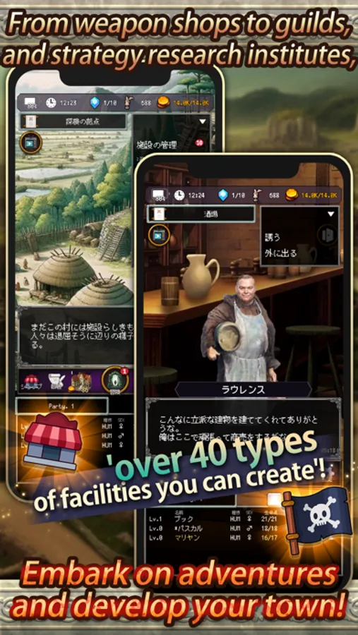 First, build a tavern where villagers gather and adventurers are born, and a weapon and armor shop for gearing up. Once they are ready to venture into the outside world, send them off on their adventures. The adventurers will continue their journey on their own will, so it's okay to close the app during their adventures.