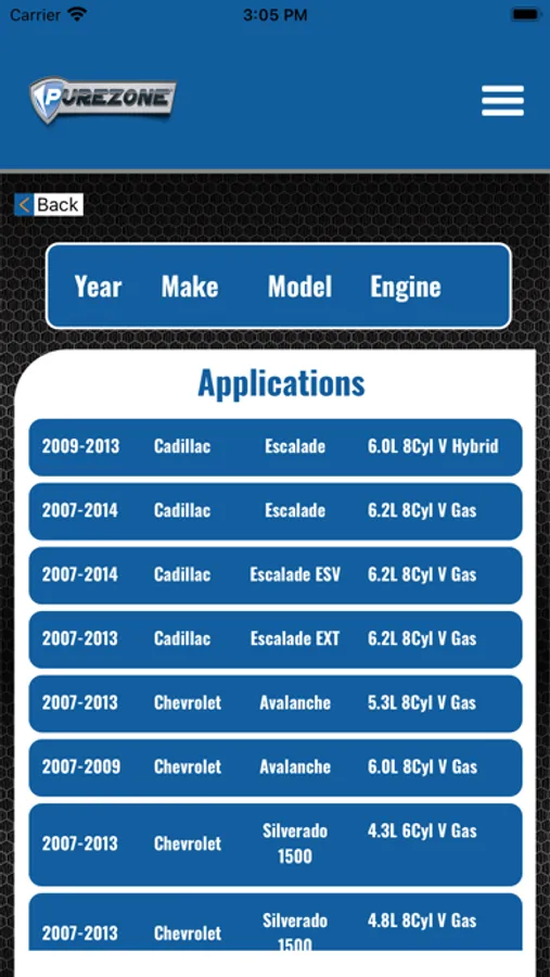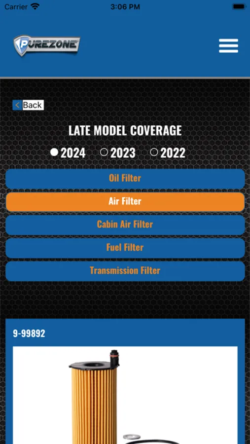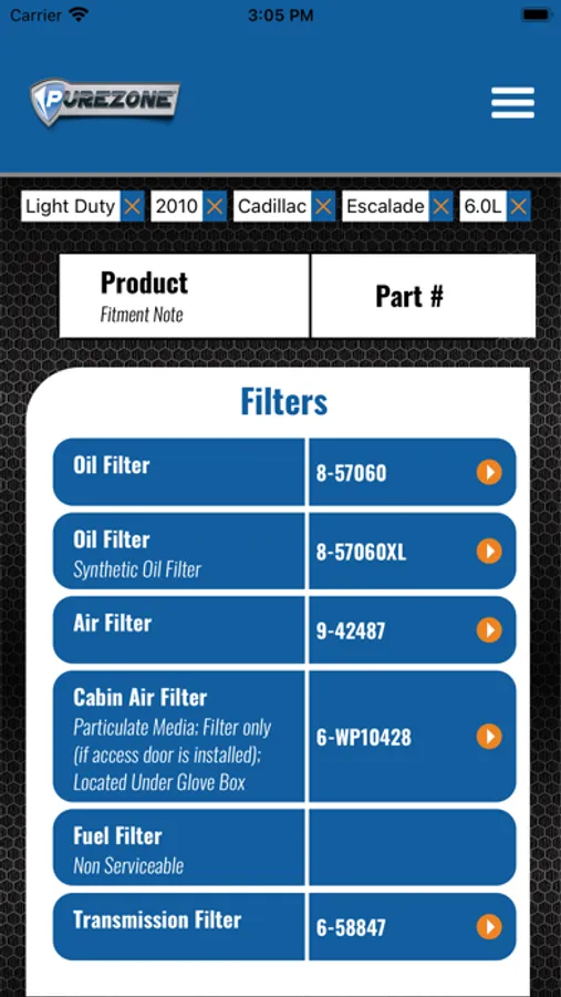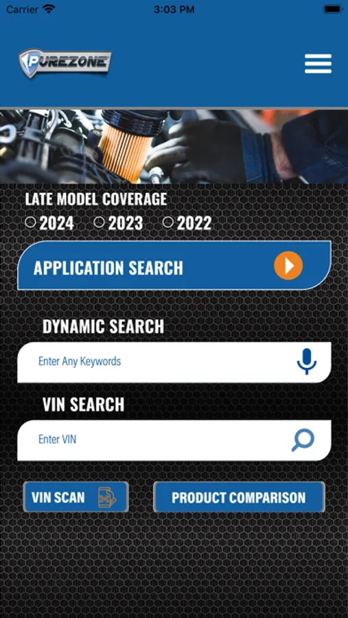 Choose the classic “Search By Vehicle” lookup to search by your vehicle’s year, make, model, and engine or switch to the updated “Dynamic Search”. With the dynamic search box, you can search for your vehicle by typing part or all your vehicle’s description and selecting from the suggestion list. You can also use the dynamic search box to enter a Purezone part number to get to the product information page or enter an OE or competitor part number to interchange it to a Purezone part.