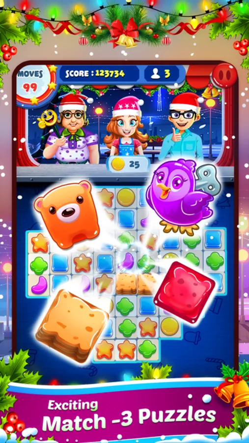 The Christmas Game will set the right mood for you and your family this holiday season. There are no lives to worry about losing, and you won't have to pester your friends for progress. Play for as long as you like! You can even enjoy this puzzling fun offline, making it the perfect Christmas game to unwind and feel cozy with while tackling a plethora of match 3 challenges.