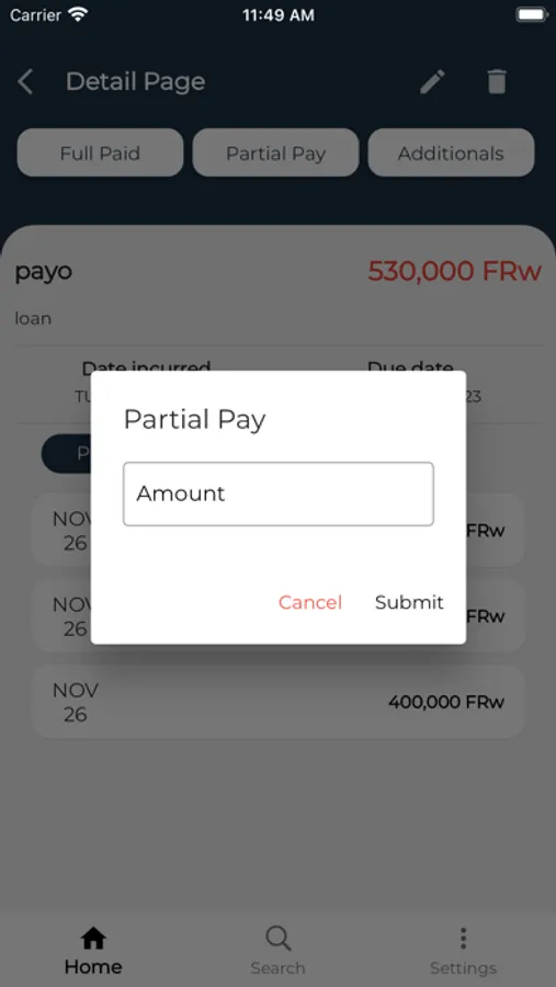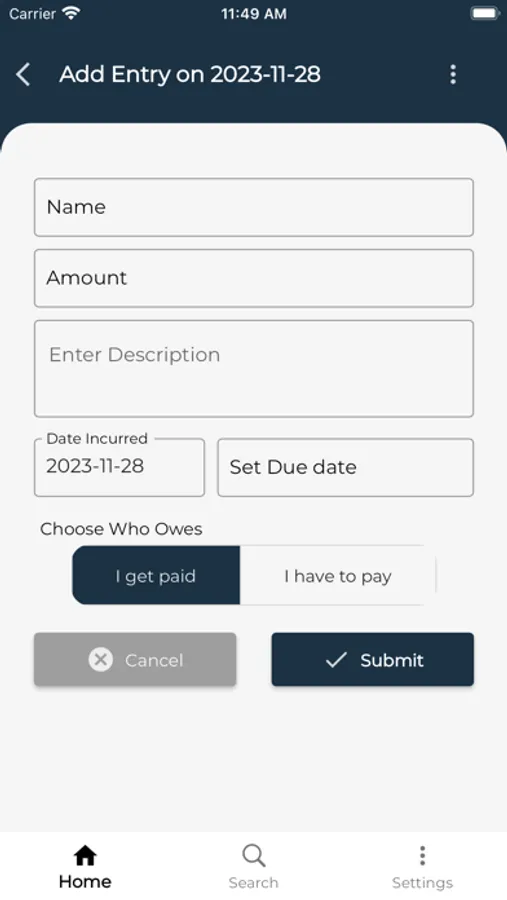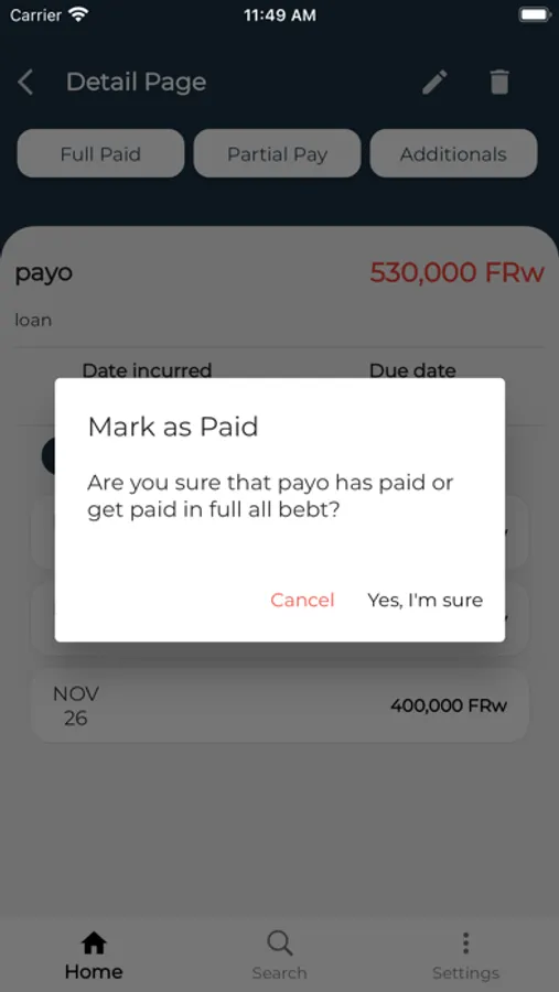 App which will help you to manage your debts . You can mark debts as paid and always have an overview of money you lent to friends.