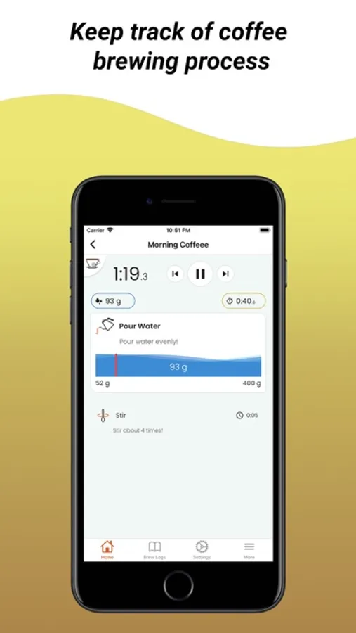 Brew Timer allows you to create your favourite recipes easily and run them while you are making coffee.