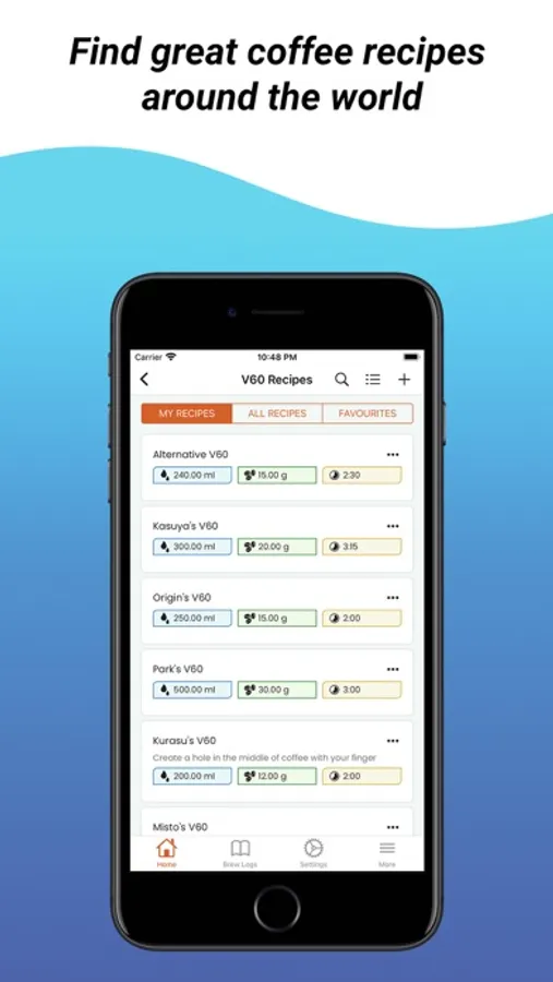 Explore the best coffee recipes. Make great cup of coffee with fully customizeable brew tracking.