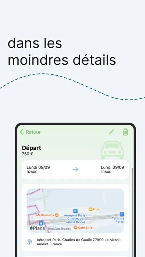 ▶ Trip management: Record your flights and train reservations directly in your trip.
