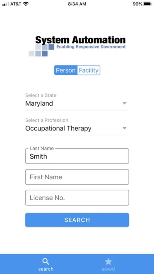 The MyLicense Verification App currently supports licensed individuals as well as searching for facility licenses.