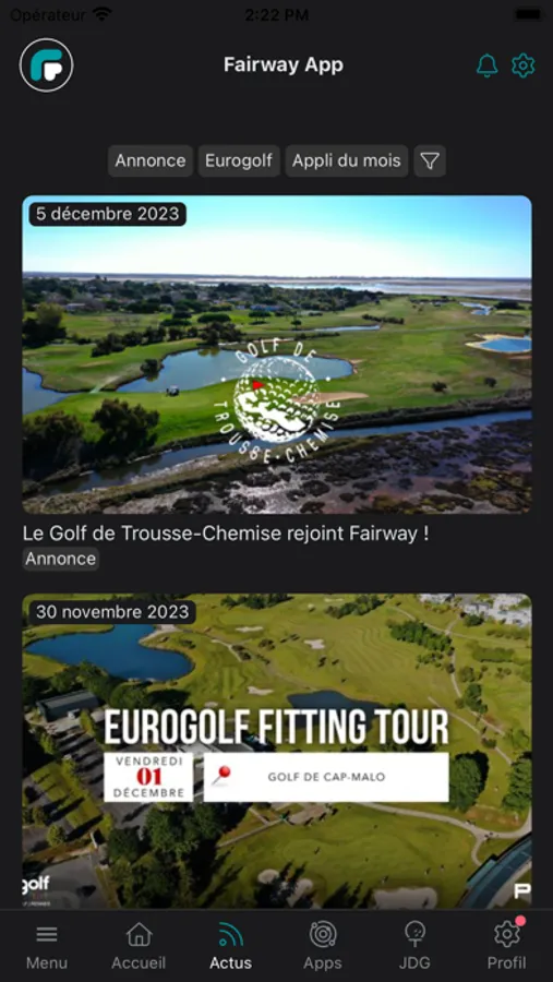 - Retrouvez tous vos golfs préférés dans une seule et même application !