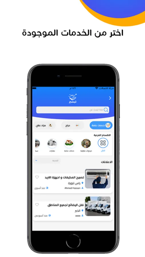 استمتع بخدمات الحراج و الاعلانات المبوبة و خدمات المزاد العلني و الخدمات العامة مثل الصيانة و غيرها كلها من خلال تطبيق تيسير