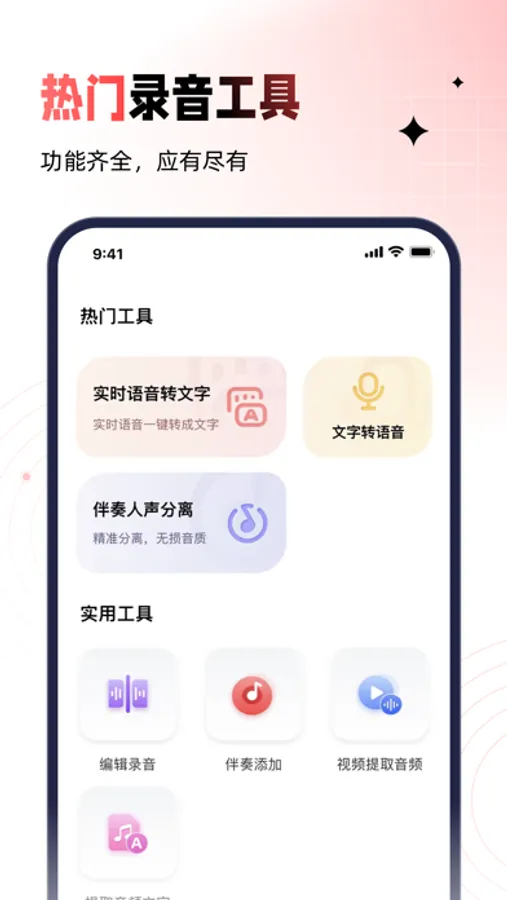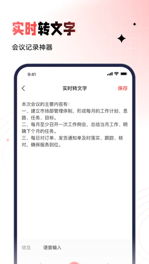 - 录音转文字:实时录音转文字、录音文件转文字精准快速,自动识别发音人,标记重要内容,支持导入音频和视频。
