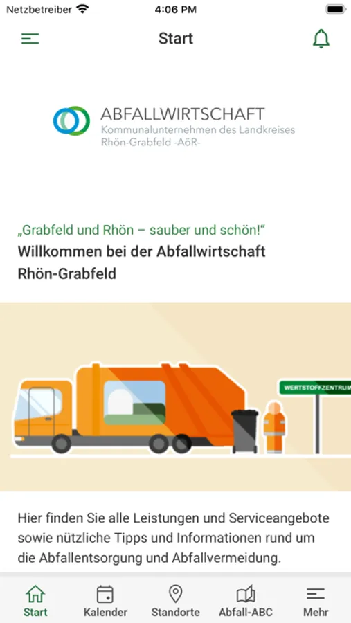Laden Sie sich die Abfall RG-App direkt auf Ihr Smartphone. Mit der App haben Sie den Abfallkalender für Ihren Ort immer griffbereit und ein Abfuhrwecker erinnert Sie zur Wunschzeit am Vorabend an die bevorstehende Müllabfuhr.