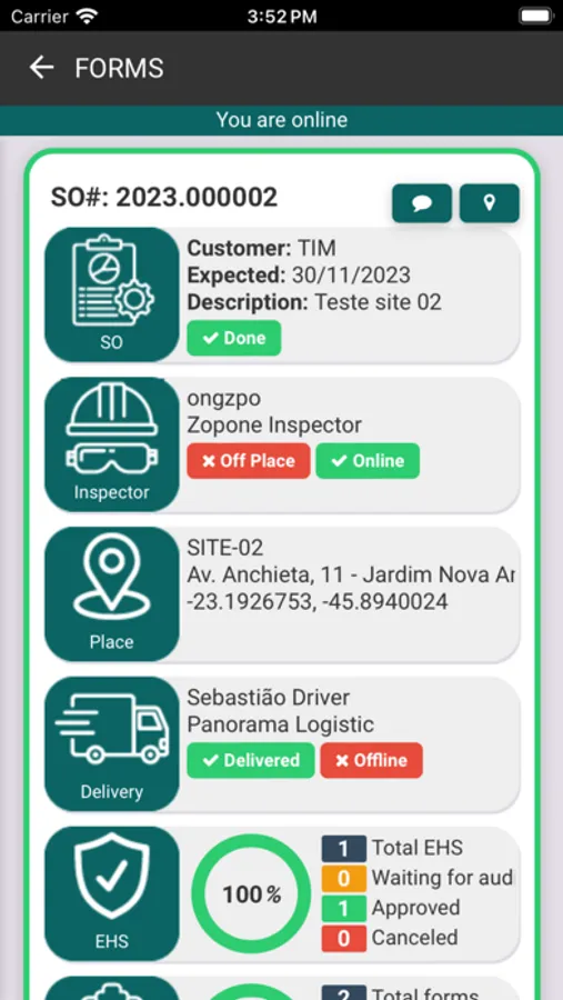gestão e auditoria de serviços realizados em campo.