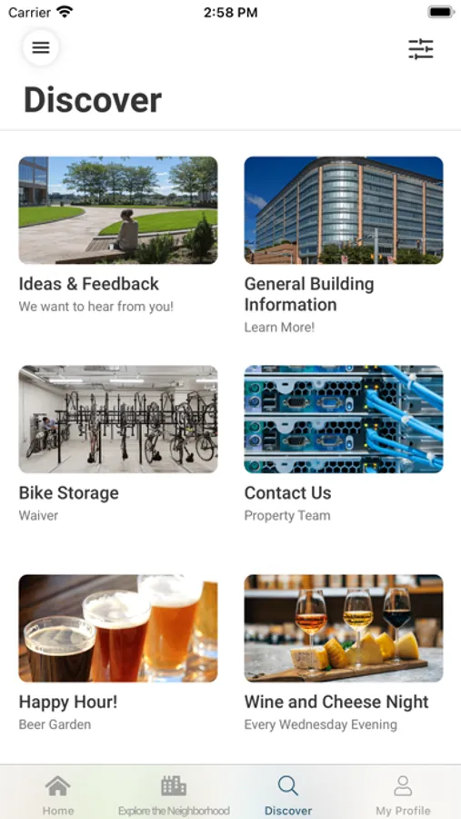 Discover the amenities, experiences, and people that make up your building. Attend, save, exercise, eat, learn, connect - all on the go!