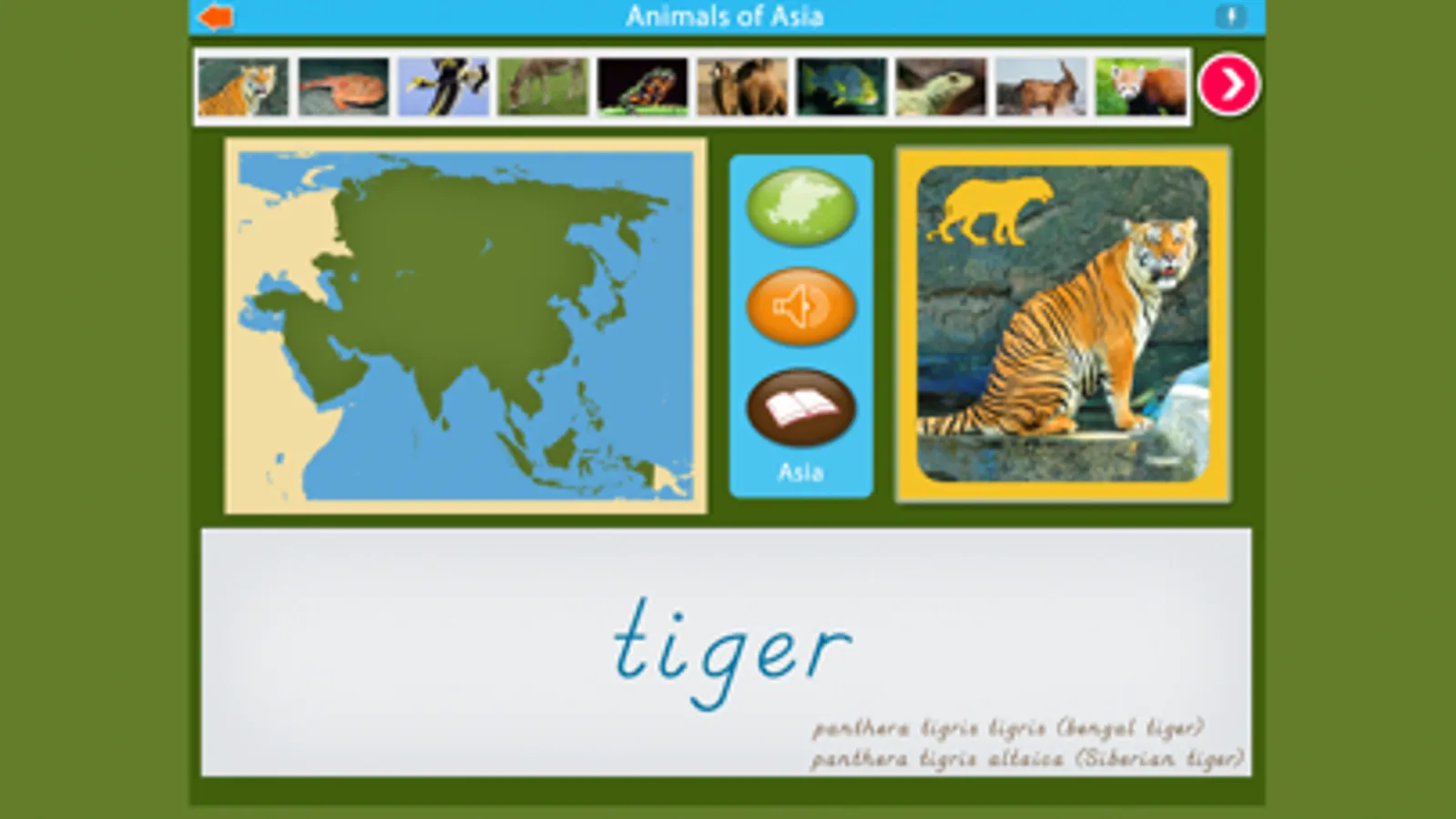This app features 40 different Asian animals. Future animal sets will be released via in-app purchase.