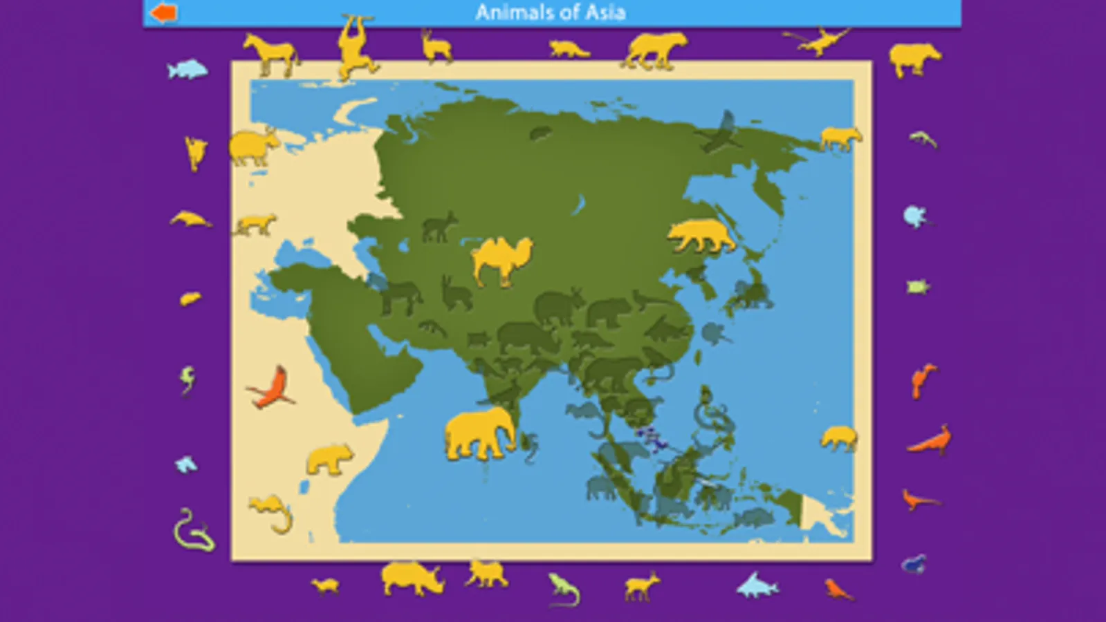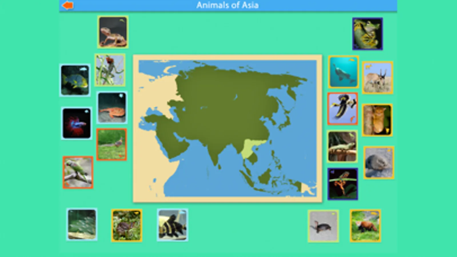 In the first habitat map lesson children have to look for the animal that corresponds to the name shown at the top, as well as, the habitat shown on the map. When they touch the correct animal card, a representative animal shape will transfer to the map as the name of the animal is heard aloud.