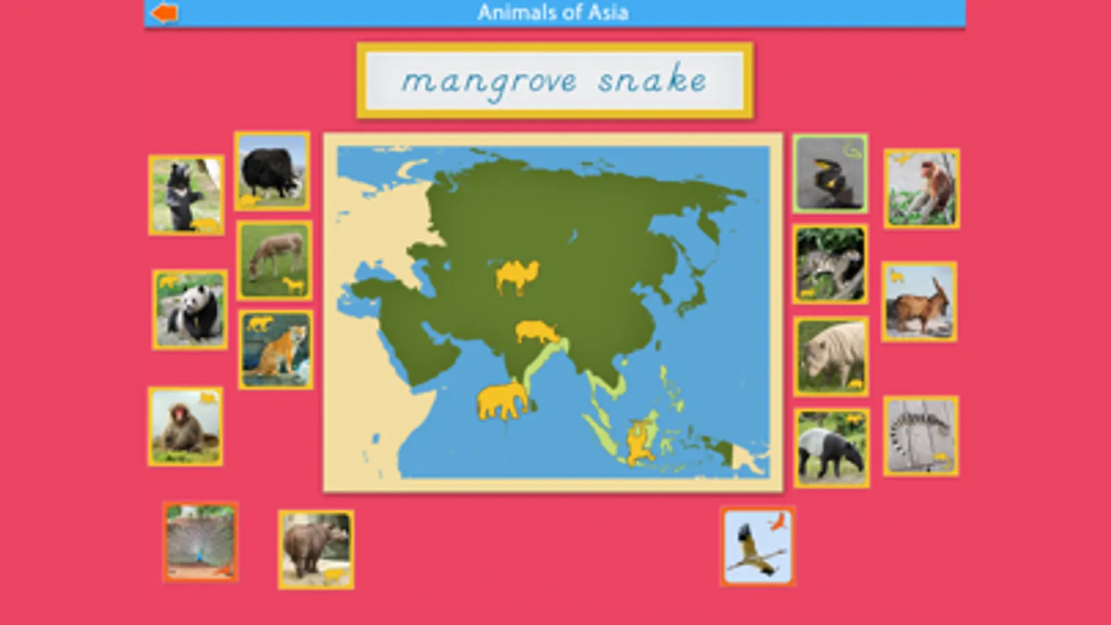 In Lessons #2 & #3 assemble the Asian Habitat maps by finding the animal prompted by the shown habitat or name. This activity expands the Continent Box activity found in the Montessori classrooms.