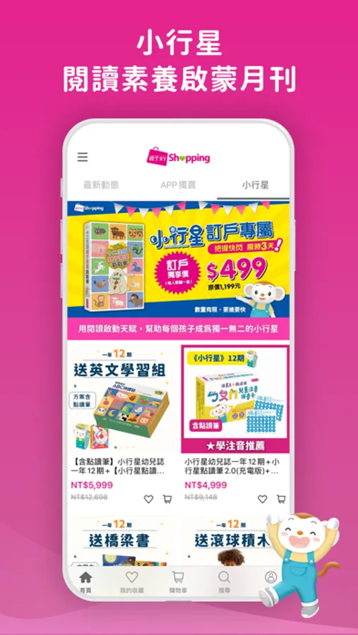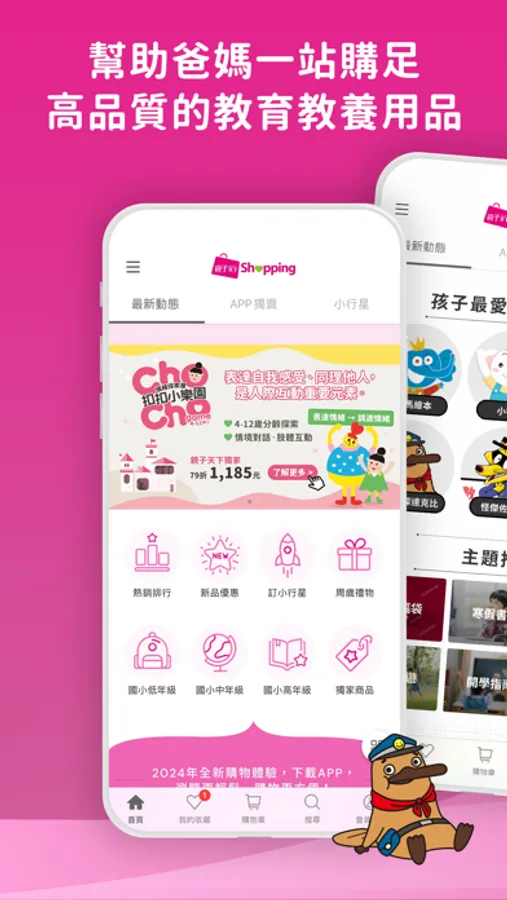最受台灣父母信賴的教育教養品牌・影響力最大的親子社群平台,滿足家有0-15歲孩子家長挑選符合孩子年紀的書籍及商品,以「學中玩、玩中學」的理念,透過專業編輯的眼光,嚴選優質的童書繪本、教育書、玩具,提供分齡分眾,讓您輕鬆挑選適合孩子成長階段的商品。每次消費都能累積親子幣,隨時享受折扣優惠。親子天下Shopping絕對是您信賴的親子購物夥伴!