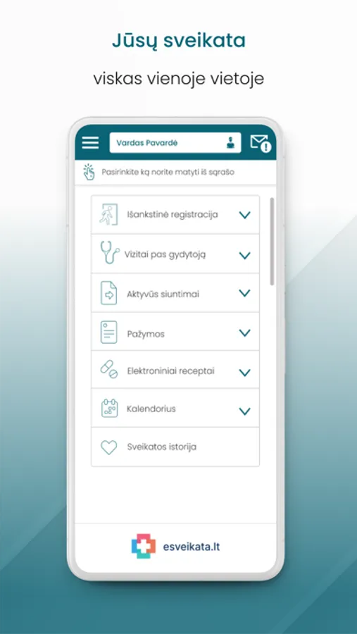 Atsisiuntę „esveikata“ mobiliąją programėlę galėsite: