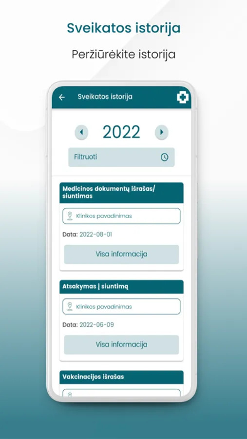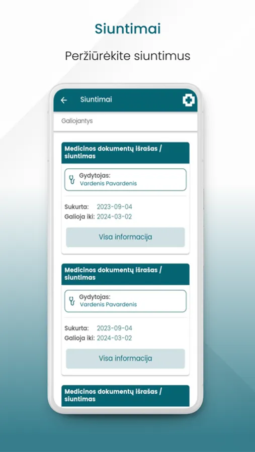 Peržiūrėti ir atsisiųsti medicininius dokumentus: pažymas, siuntimus, el. receptus ir kt.;