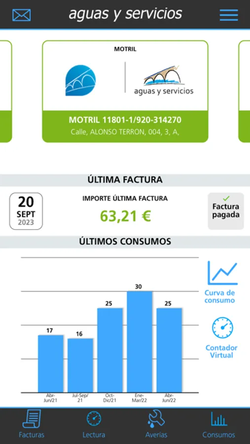 Herramienta que proporciona a los usuarios una visión global de sus contratos, facturas y otro tipo de gestiones relacionadas con los servicios de AGUASYSERVICIOS.