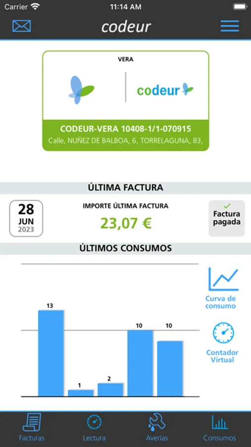 Herramienta que proporciona a los usuarios una visión global de sus contratos, facturas y otro tipo de gestiones relacionadas con los servicios de CODEUR.