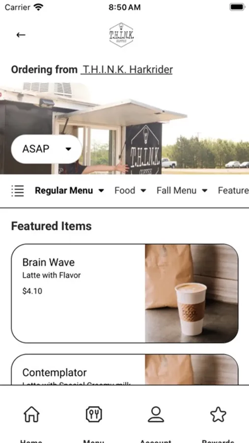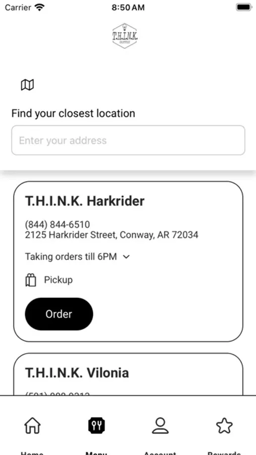 Use the T.H.I.N.K. Coffee app to find your nearest location, view our menu, and place an order. Save time by ordering ahead. Earn loyalty points and track your rewards status from within the app.