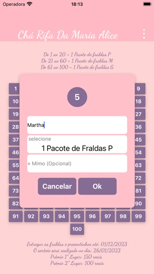Imagine a conveniência de organizar um chá rifa (chá de fraldas) para seu bebê com apenas alguns toques no seu dispositivo. Nosso aplicativo torna todo o processo simples e divertido, oferecendo recursos exclusivos que vão além do que você esperaria.