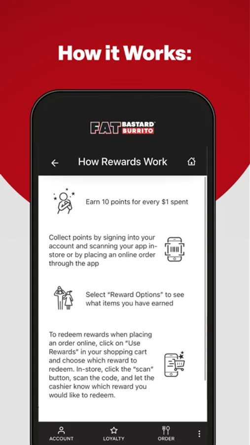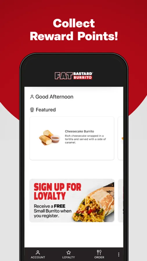 The Fat Bastard Burrito app is a convenient way to skip the line and order ahead. Rewards are built right in so you can collect points and start earning free food with every purchase!