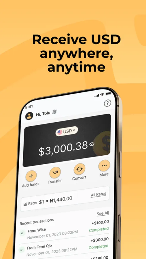 Save and hold your funds in USD. Exchange only when you want to, at the best rates.