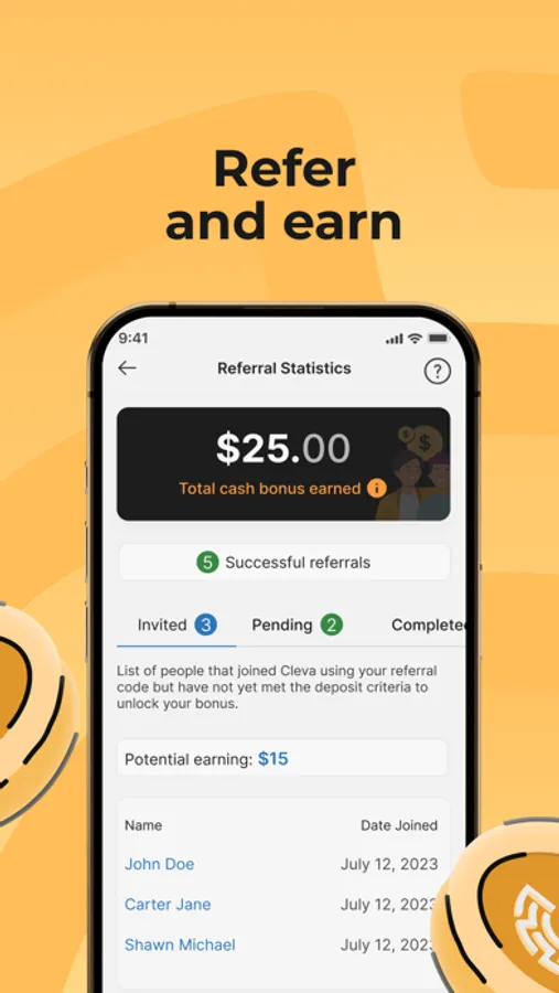 Invite your friends and earn when they transact on Cleva. The more friends you refer, the more you earn, and you can keep earning infinitely.