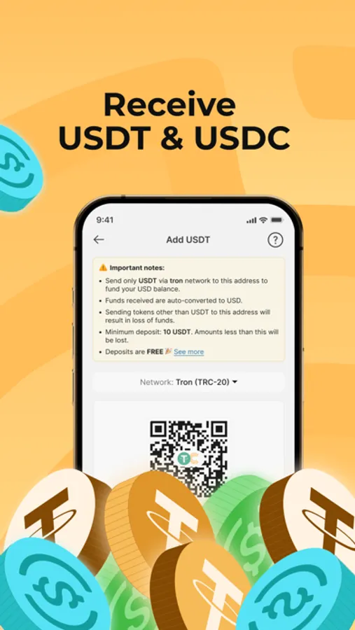 Receive USDT or USDC into your Cleva wallet in minutes, giving you more ways to fund and grow your money.