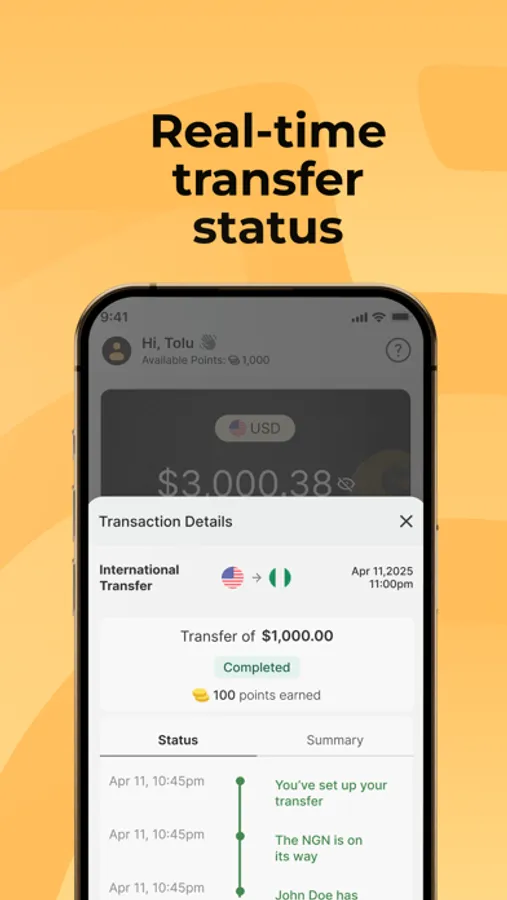 Get rewarded every time you transact! Earn points when you transfer or receive a deposit, then redeem your points for USD and more.