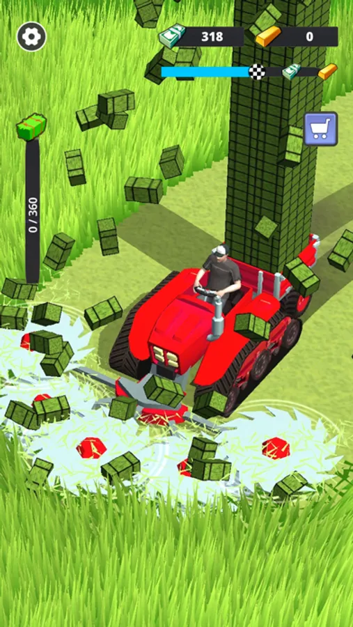 The fun doesn't stop there! The cuts of grass bring you money, too! After your character plows and mows, shift your focus to selling your harvest! Spend the earned money to upgrade your tractors: sharpen your saw, make your excavators faster, and expand the capacity of your grass cutter to store more grass! Explore the world of heavy machinery in this truck simulator!