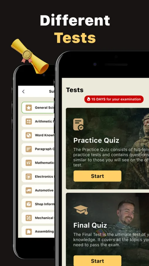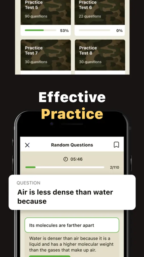 ASVAB Test - is a comprehensive preparation app for the Armed Services Vocational Aptitude Battery (ASVAB) tests widely used in the U.S. Armed Forces. This app offers a variety of practice tests that allow users to increase their knowledge in all areas that are critical to passing the ASVAB. With interactive exercises, detailed explanations, and personalized progress reports, ASVAB Prep provides effective and confident test preparation. This app provides the tools you need for effective and focused preparation.