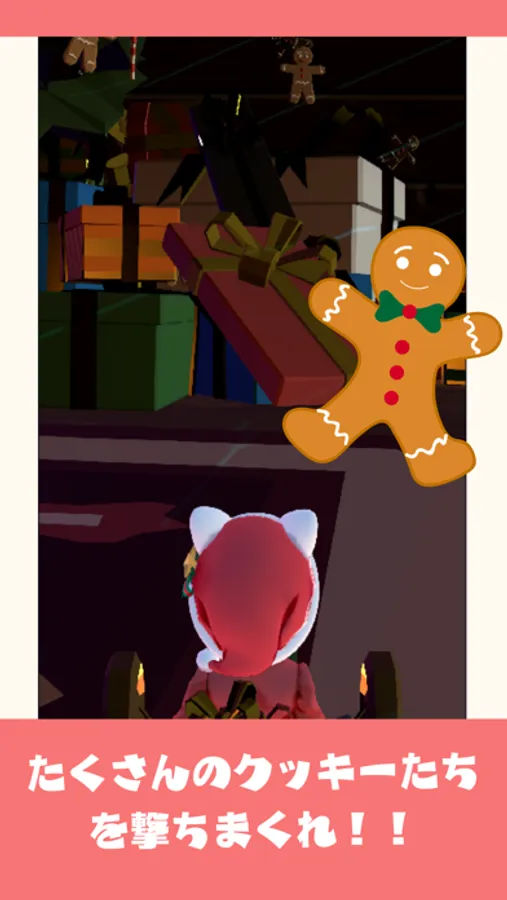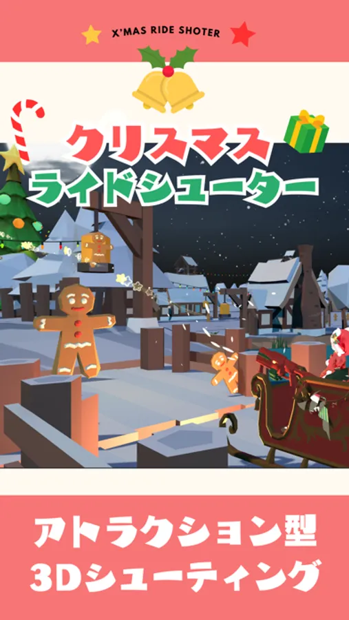 In the winter midnight, ride a coaster through snow-covered streets and homes, shooting numerous cookies (Gingerbread Men) appearing along the track with your shooter. With easy one-handed controls, it's perfect for casual play during leisure or short breaks.