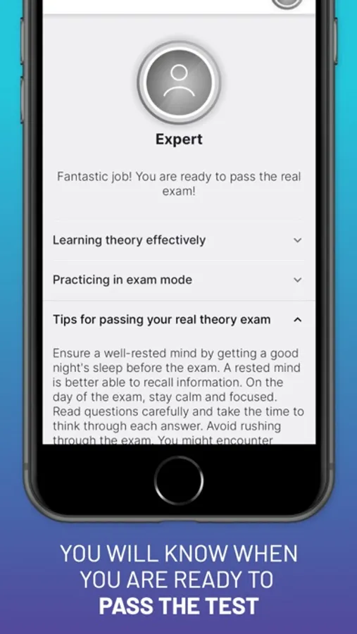 • Smart learning modes – Personalized recommendations tell you when you're ready for the real test.