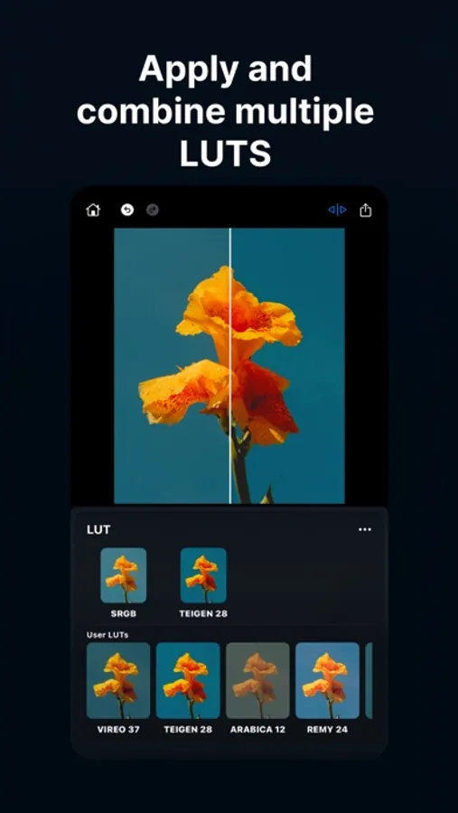Edit once, apply anywhere. Save your custom looks as LUTs to maintain consistent style across all your projects. Works seamlessly with both videos and photos.
