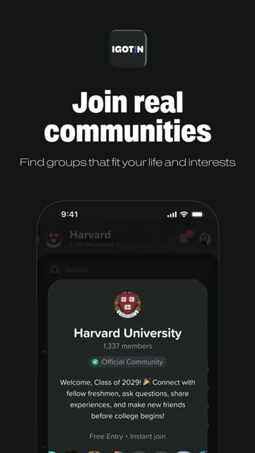 IGOTIN is a social community platform where anyone can build and run their own group — whether you’re starting a college network, a student club, or a creator-led space.