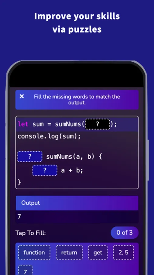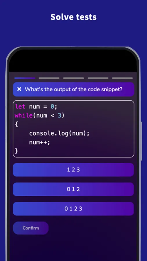 The app will help you learn all necessary JavaScript programming concepts.