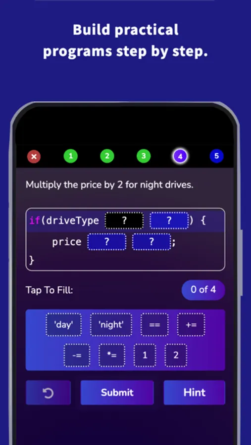 * Unlock all challenges and build practical JavaScript programs step by step.