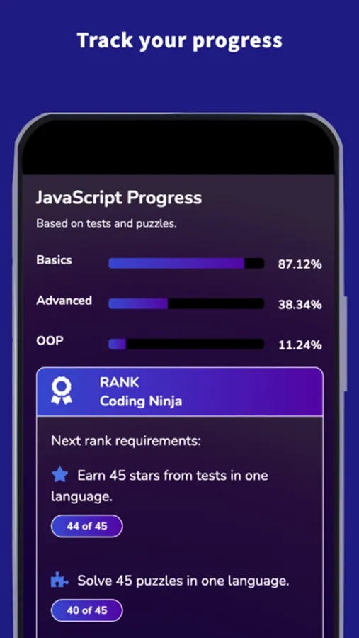 Boost your JavaScript learning experience by climbing ranks.