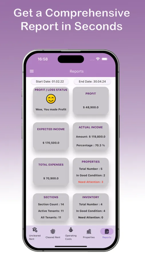 Comprehensive Analytics: Landlords can access detailed reports on income, expenses, property stats, and more to evaluate business performance.