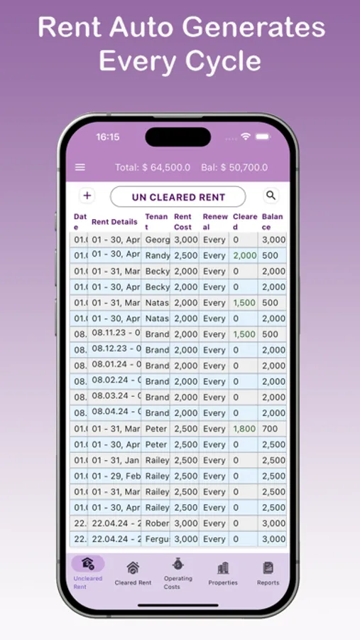 Manual & Automated Rent Data: Landlords can enter rent details manually or let the app's automated rent billing software generate rent data for all registered tenants each cycle.