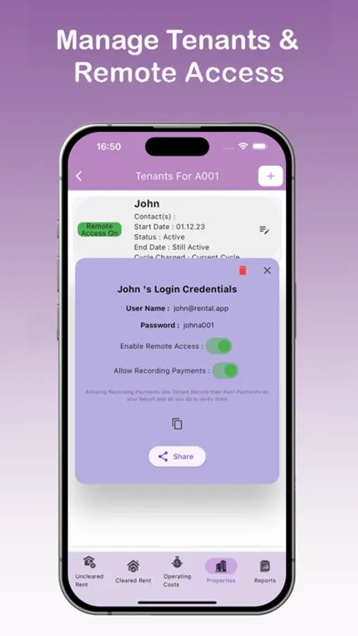 Remote Access for Landlords: Landlords can use the app's tenant management software to grant registered users’ remote access to their data.