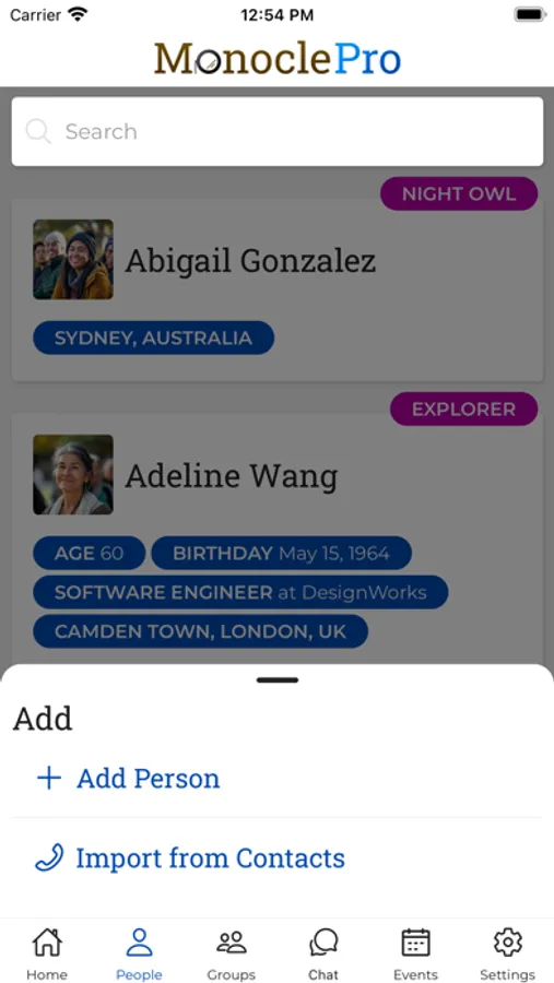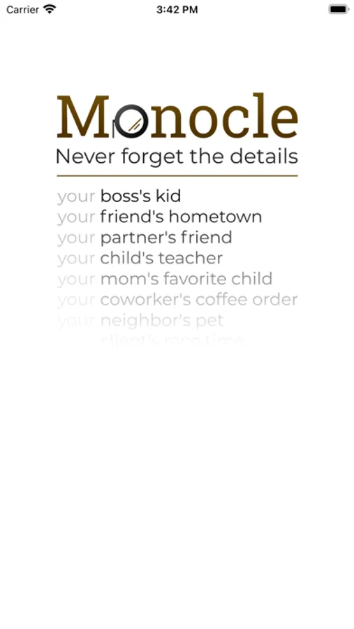 With Monocle, effortlessly track and manage important details about the people in your life - from family and friends to colleagues and acquaintances. Whether it's remembering birthdays, anniversaries, or the little things like favorite foods and hobbies, Monocle ensures you're always in up to date with your personal network.