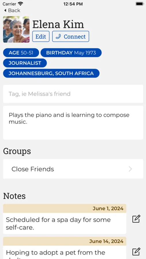 Organize relationships, mark significant dates or events, and keep a record of meaningful locations, pets, and more. Enhance your connections with thoughtful details, all securely stored and easily accessible.