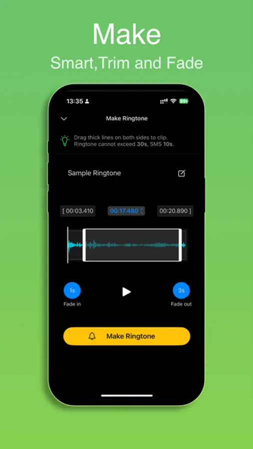 Seamless Editing: Trim, cut, and fade your audio files with precision, ensuring your ringtone is just the way you want it.