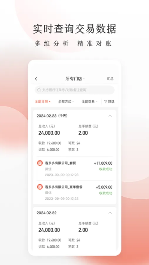 · 商户交易数据多维度汇总与查询,助力商户进行精细化经营分析