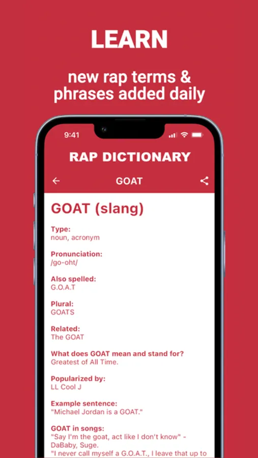 Trying to learn more about Rap & Hip Hop music? Then, this app is for you! Download the Rap Dictionary app for unlimited access to rap terms whenever and wherever you need them. Now you know what that word in that song means.